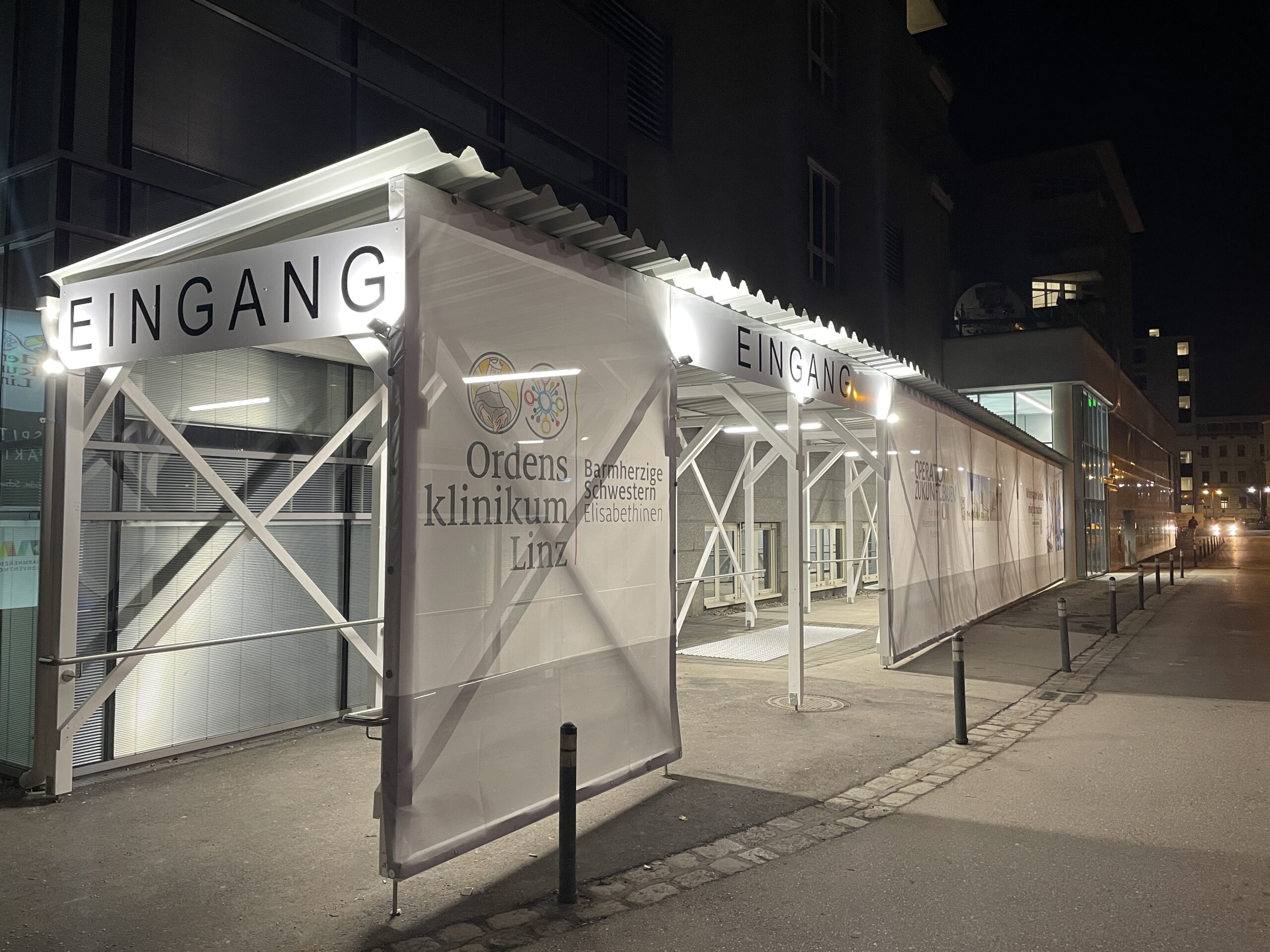 Die Verlegung des Haupteingangs ist eine vorbereitende Maßnahme, um mit den Bauarbeiten am Krankenhausvorplatz beginnen zu können. Dort entsteht bis 2027 ein neuer Gebäudeteil, der künftig den Haupteingang, die Rettungszufahrt sowie Bettenstationen und Ambulanzräumlichkeiten beherbergen wird.